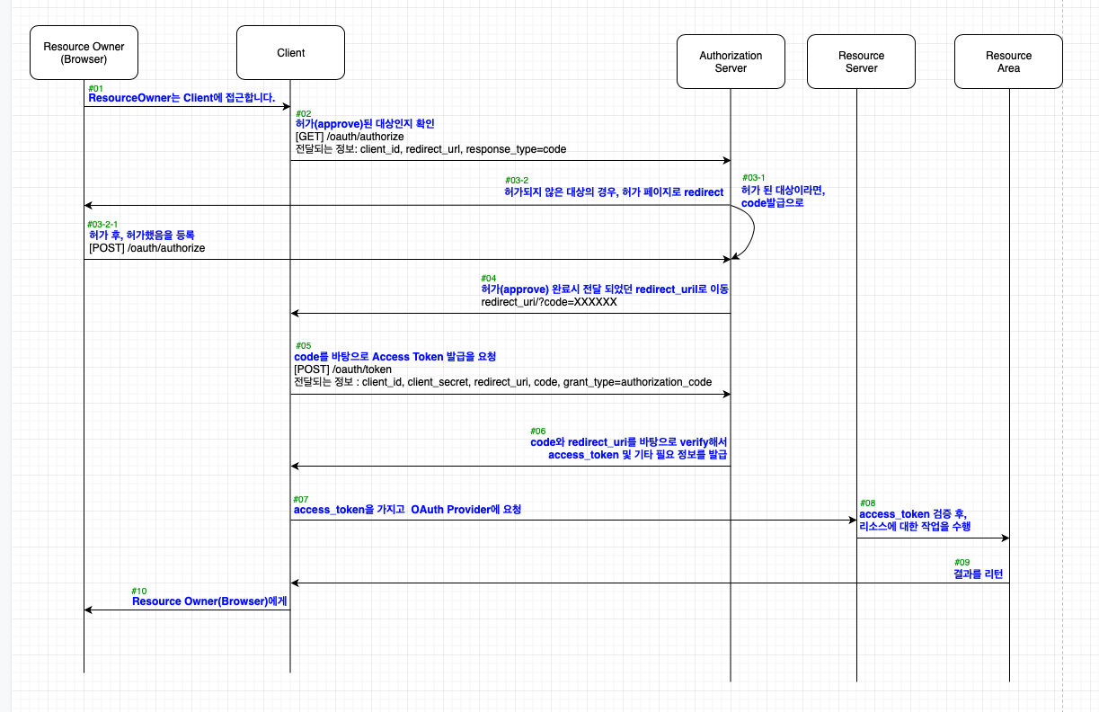 Authorization Code Grant Type의 인가 수순은 아래와 같습니다.