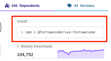 위 예시는 vue-fontawesome에 게시된 npm 패키지 이후,
