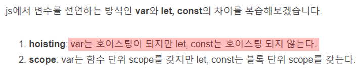 이를 이해하기 위해선 호이스팅에 대한 정확한 개념을 알아야한다.