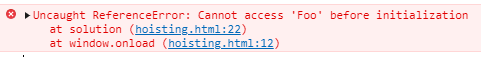 (여기서 한 번 더....변수나 함수를 선언 이전에 사용할 수 있게 해주기 위함인데 왜 class Foo는 에러...? 라는 의문에 대해서는 아래의 3. Temporal Dead Zone 에서 설명하겠다)